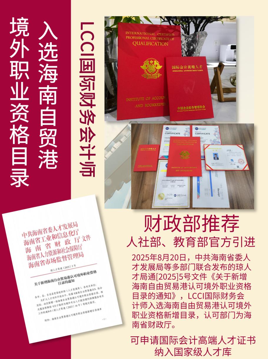 尤其值得关注的是★◈◈✿ღ,在海南自由贸易港建设的政策红利加持下★◈◈✿ღ,LCCI证书凭借其权威认证背景及广泛的国际认可度★◈◈✿ღ,成功纳入《海南自由贸易港境外职业资格比照认定职称目录清单(2025年版)》★◈◈✿ღ,成为海南自贸港重点认可的105项境外职业资格之一★◈◈✿ღ。为LCCI持证者在海南的职业发展开辟了“绿色通道”★◈◈✿ღ。在“十五五”规划逐步推进★◈◈✿ღ、中国企业“走出去”步伐持续加快的背景下★◈◈✿ღ,这种“国家政策+地方红利”的双重优势★◈◈✿ღ,使LCCI证书成为国内财务人才通往国际化发展的“官方通行证”★◈◈✿ღ。